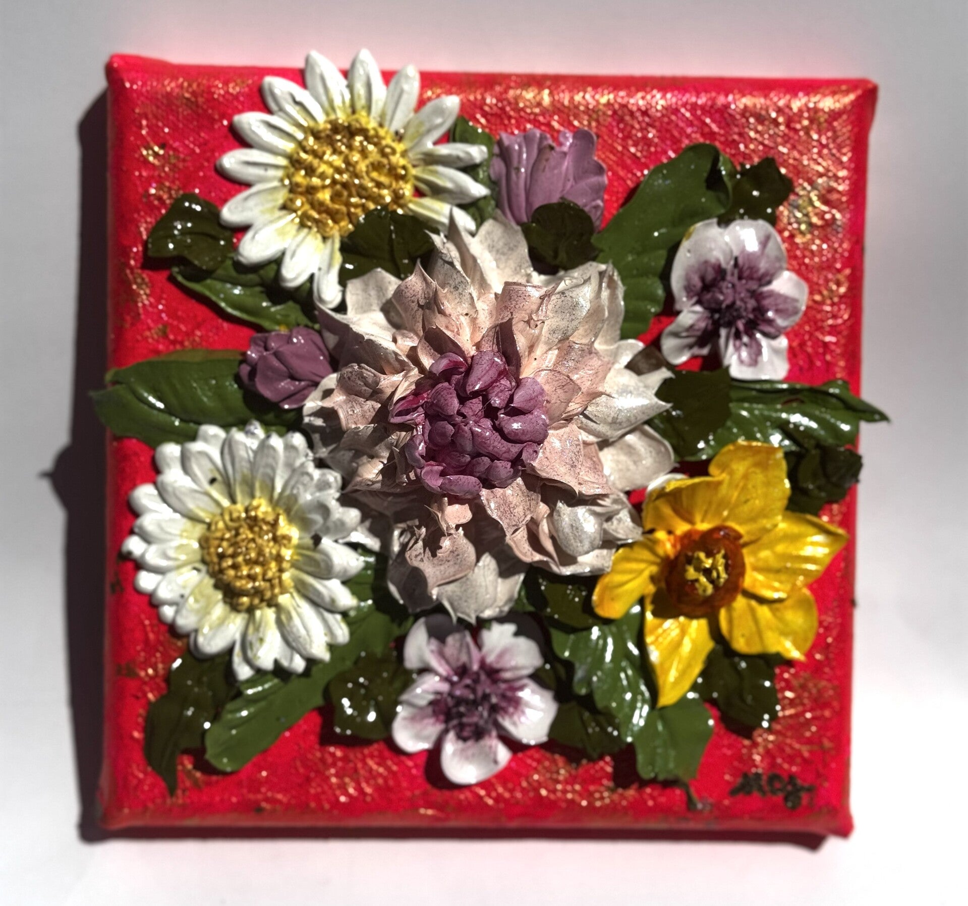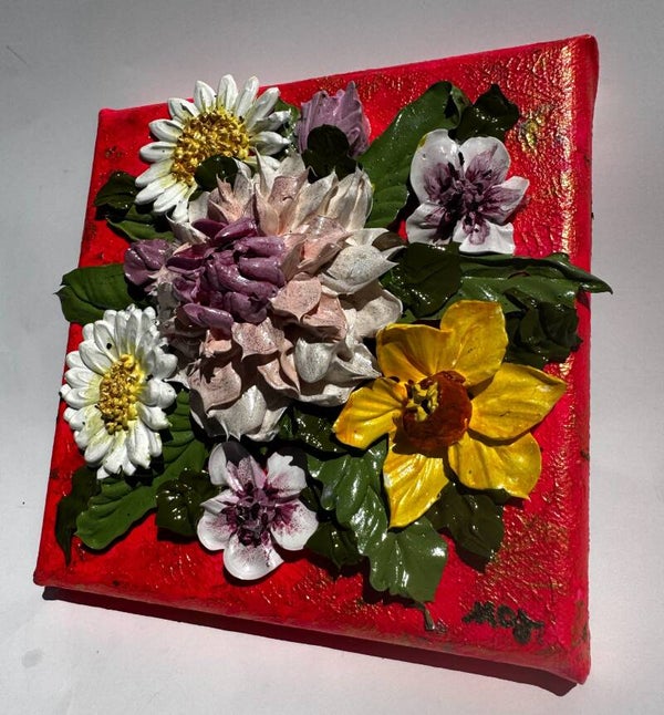 Custom flower canvas - pop of hot pink canvas with assortment of 3D acrylic florals.